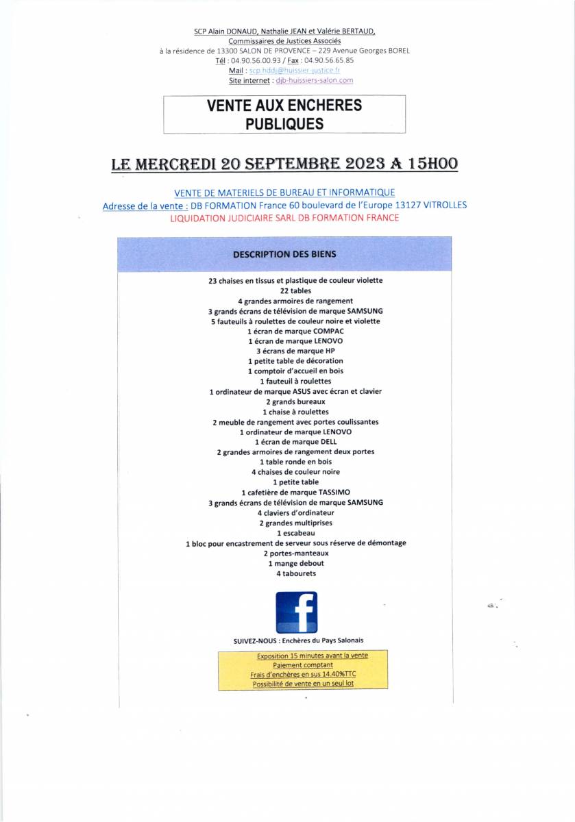 VENTE AUX ENCHERES PUBLIQUES DE MATERIELS DE BUREAU ET INFORMATIQUE