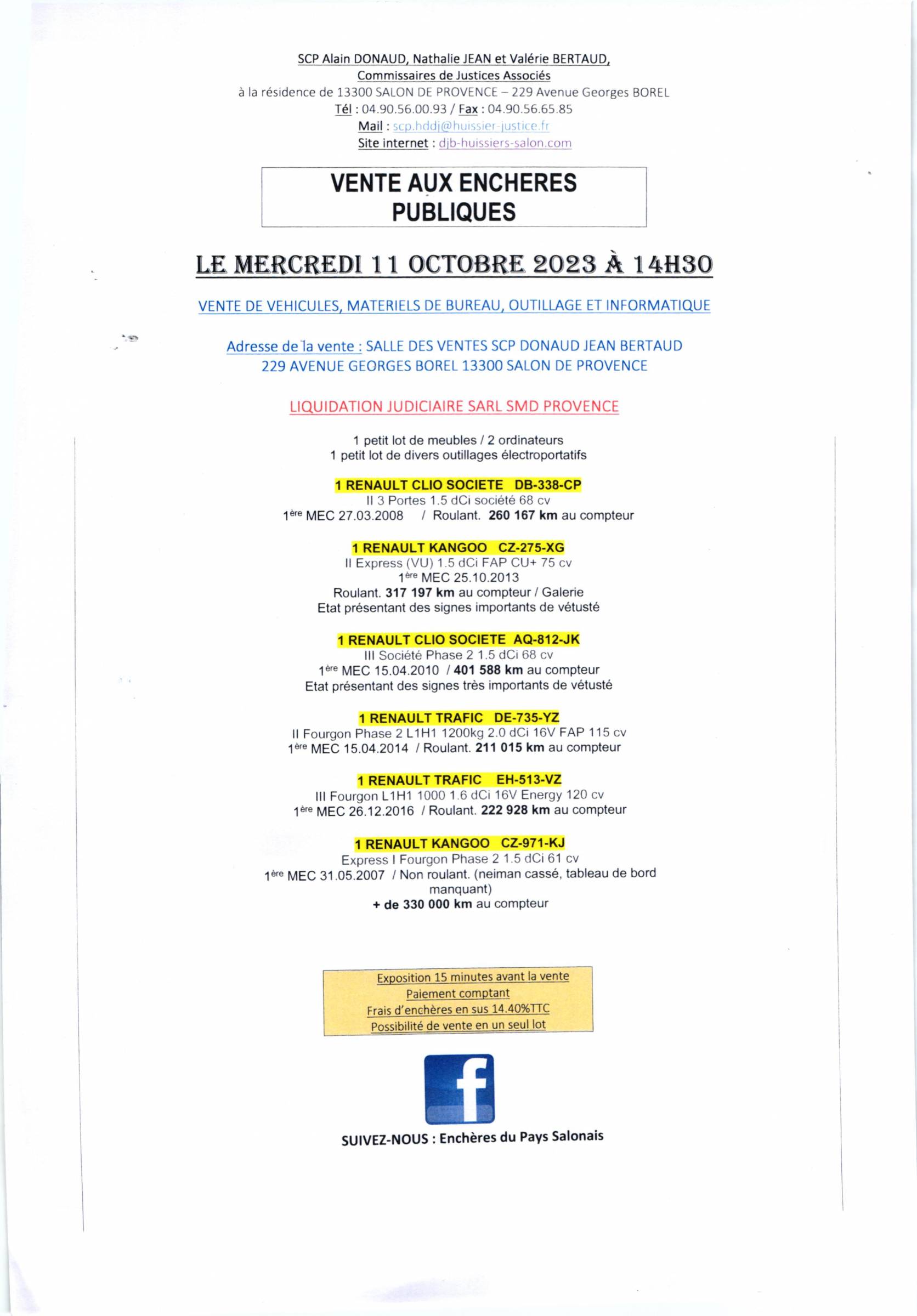 VENTE AUX ENCHERES PUBLIQUES DE VEHICULES, MATERIELS DE BUREAU ,OUTILLAGE ET INFORMATIQUE
